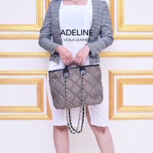 Voila Adeline, Tote basic ukuran sedang dengan design yang Simple cantik, mewah elegan, ringan kuat dan long durability, dengan kombinasi material voila Nylon OX  – 001 Premium yang anti air dan kulit nappa milling jeruk premium, anti air kuat dan mempunyai bentuk dan design yang simple cantik elegan, sangat pas untuk menemani kegiatan kamu sehari-hari seperti kekantor, ke mall kuliah atau menemani kegiatan traveling. Pas dipadankan dengan busana muslim, busana kerja atau busana casual. Jika kamu sedang mencari sebuah tas tote basic ukuran sedang, ringan, design simple cantik dan elegan, nyaman kuat  Voila Adeline kami rekomendasikan untuk kamu.