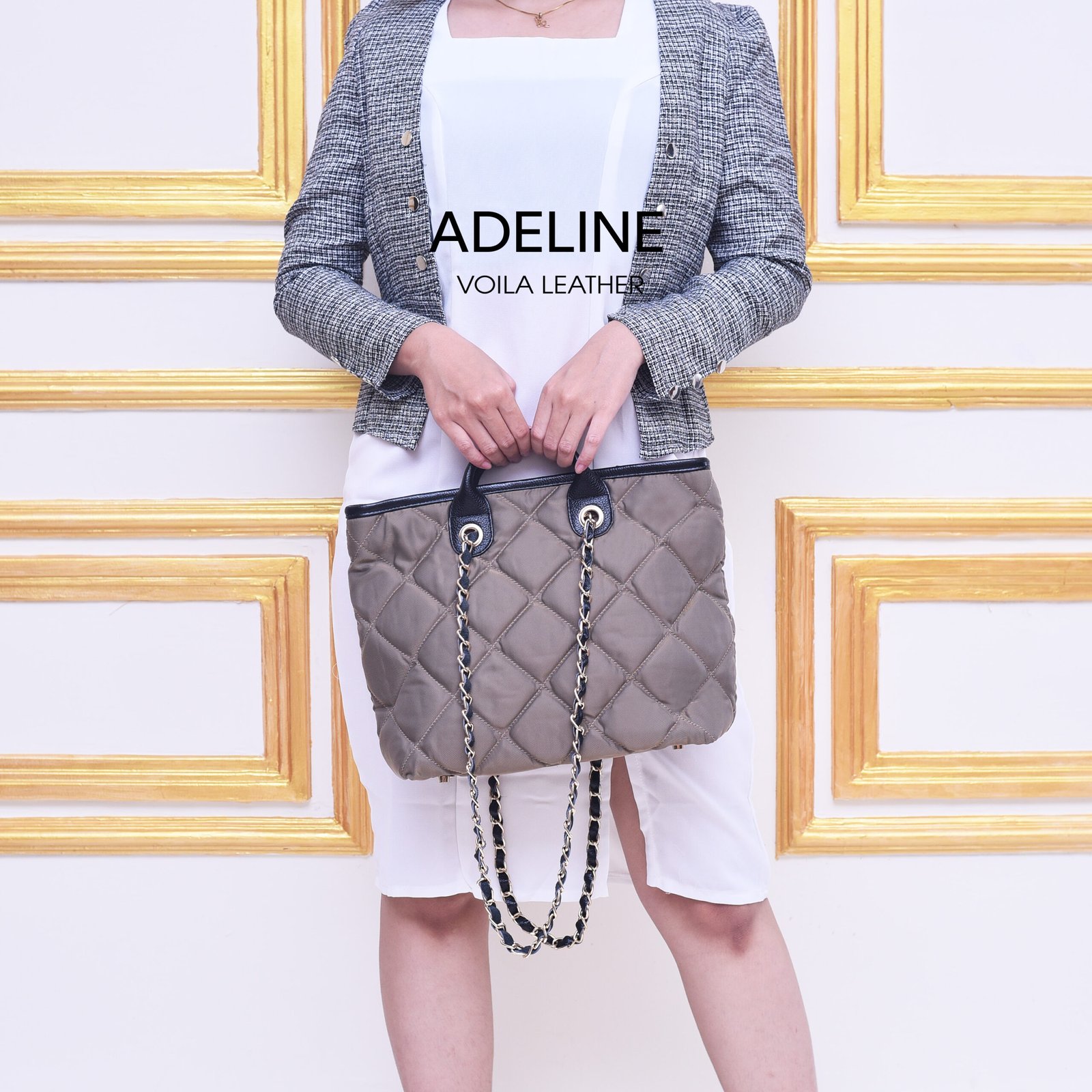 Adeline dilengkapi dengan jinjingan, rantai mewah dan selempang sehingga kamu mempunyai 3 opsi untuk memaki tas ini, di jinjing dikenakan dibahu atau diselempang, menggunakan zipper sebagai penutup utama.